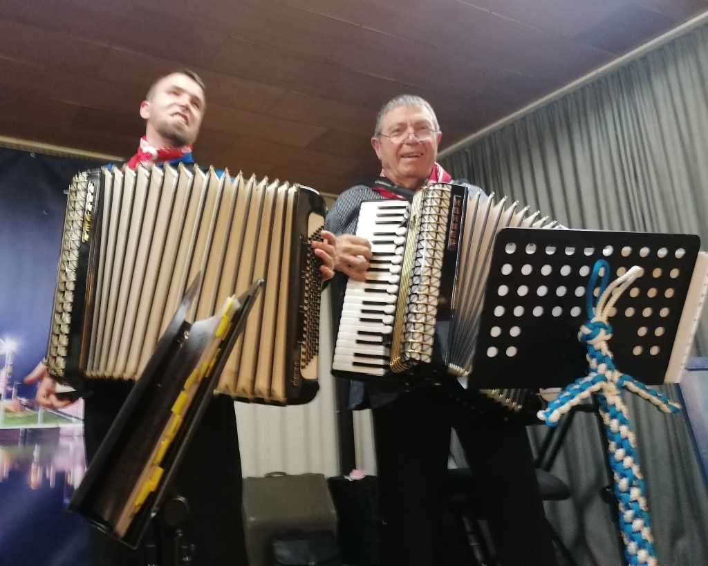 Auch zu den Proben begleiten der 33-jährige blinde Akkordeonspieler Benedikt Schimmel gemeinsam mit dem 80-jährigen Winzer Alfred Hammerstein die Sänger auf dem Akkordeon. Die beiden Jubiläumskonzerte wurden auch von Marco Werz auf der Violine und um die Mundharmonika von Willi Merz ergänzt.