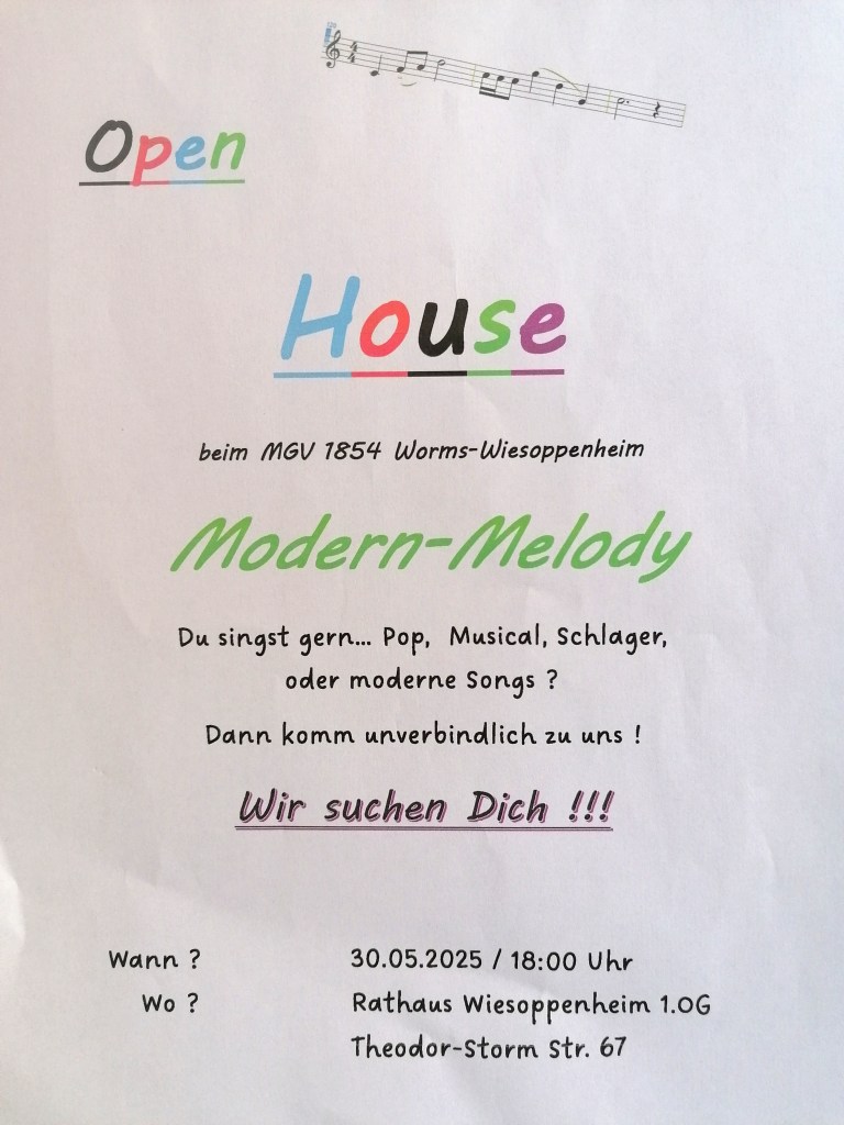 Modern Melody, unser Pop-und Gospelchor, lädt Dich am Freitag, 30. Mai 2025 um 18 Uhr dazu ein, gemeinsam mit den Sänger:innen ein Gospel einzustudieren und unverbindlich in das Chorleben hineinschnuppern
