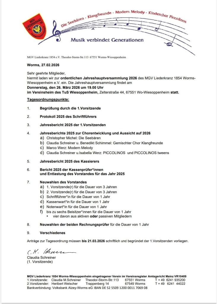 Der MGV Liederkranz 1854 dankt seinen Förderern von Herzen für ihre Unterstützung !